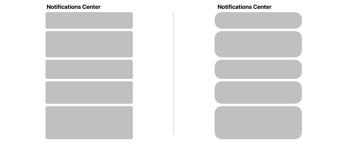 3. Diminish the mental weight of App Round corner create weight in an UI object. Think about real life object a wooden table vs. a piece of paper and how they have different corner radius. It’s good when only used on certain things such as app icon because app has “heavy” weight. But it’s no longer true if everything is rounded.