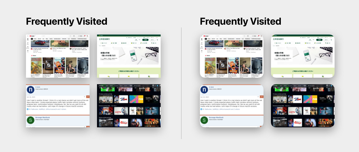 4. Make the contents look badly cropped Contents inside a rounded frame does not always look good, especially when it is a scrollable list, a picture or a video. Sometime sharp corner simply just fit more to the nature of the contents. Round corner makes it feel like the contents are “wrapped” in a container and users are not directly “touching” the album art or webpage, etc.