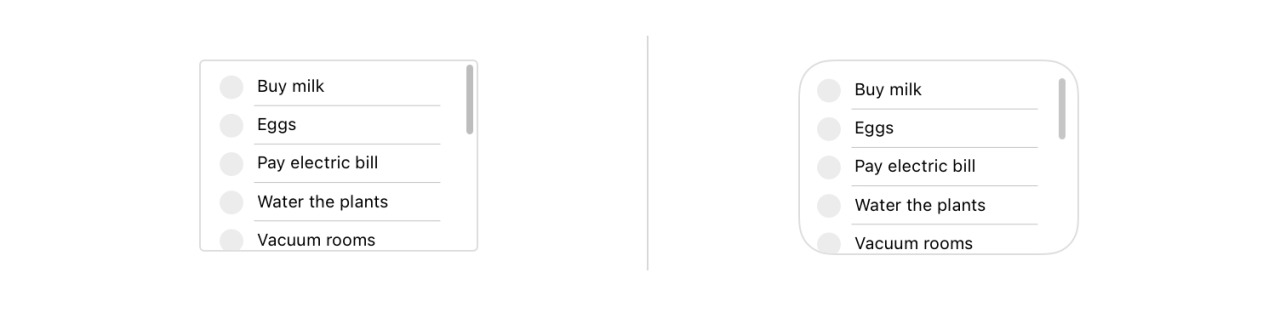 5. Make a list feel messy and distracting List of item framed by rounded corner can have this inconsistency feeling even though items are using the same corner radius.