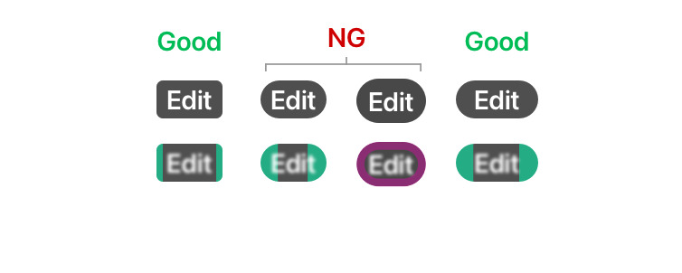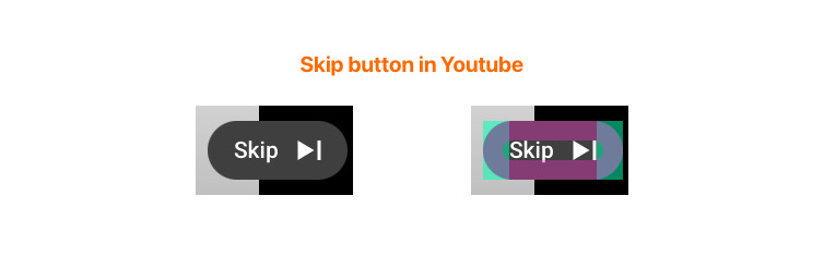 1. Looks unpolished if not having enough margin. In the example below, when button corner radius increases, its text no longer looks in place. We have to make the button frame longer to create more margin, so that it looks comfortable again. Look at the “Skip” button in Youtube, you will see how much margin does a pill shape button need.