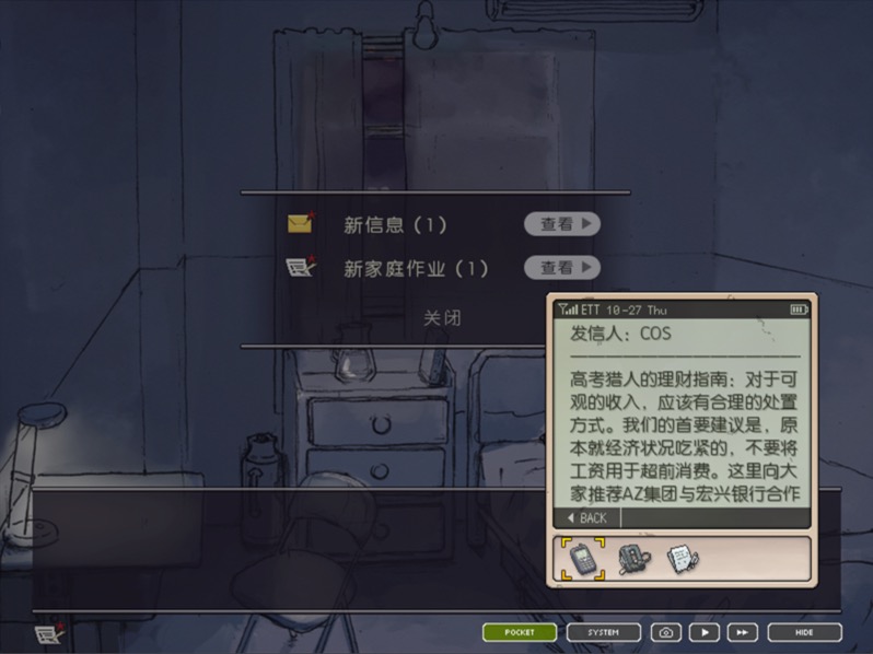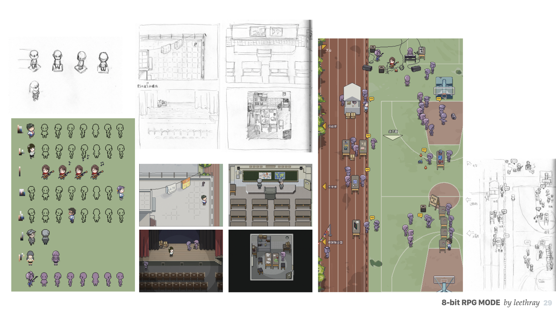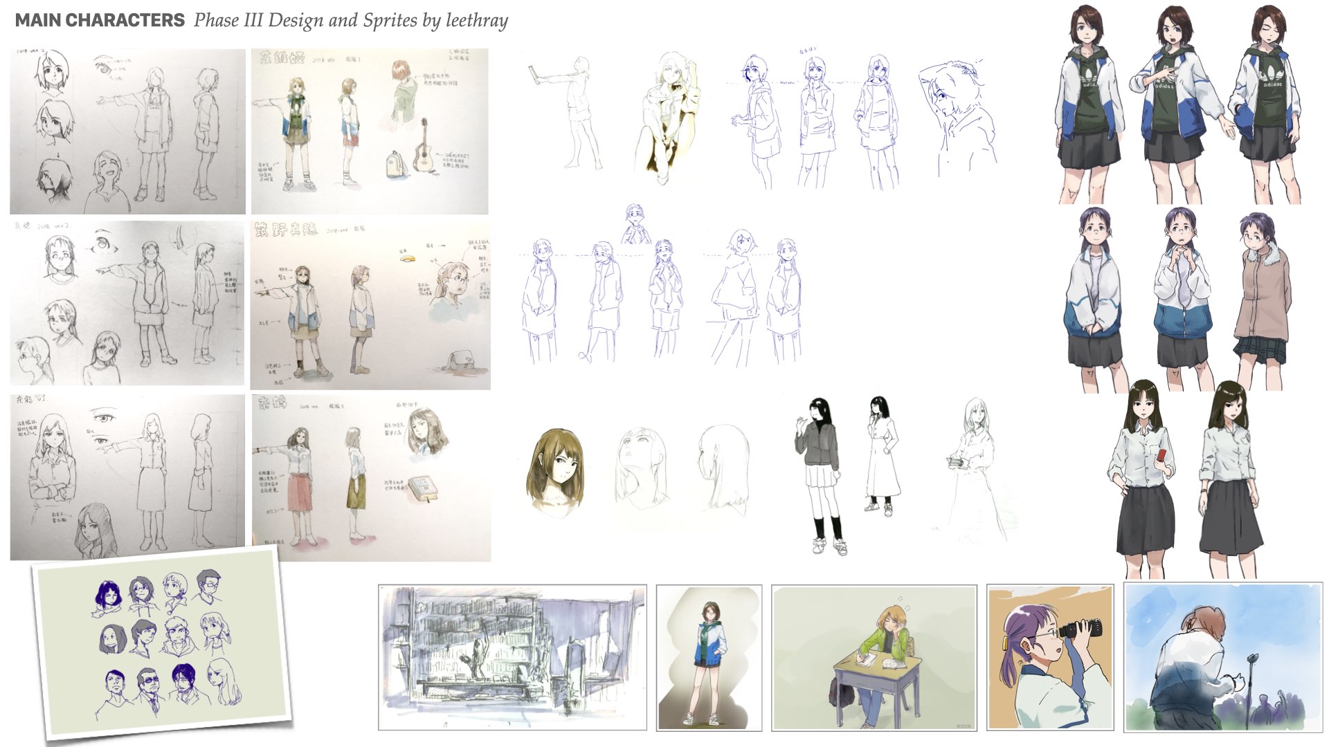 At the inital stage I designed the characters and key image of the world view. During the production I produced UI elements, more than 20 character spriters, over 30 backgrounds with weather variations, 10 CG cut scenes and 3 short animations for the endings.